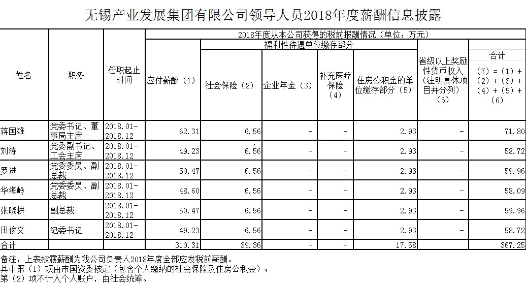 2018年度國企領導人薪酬信息