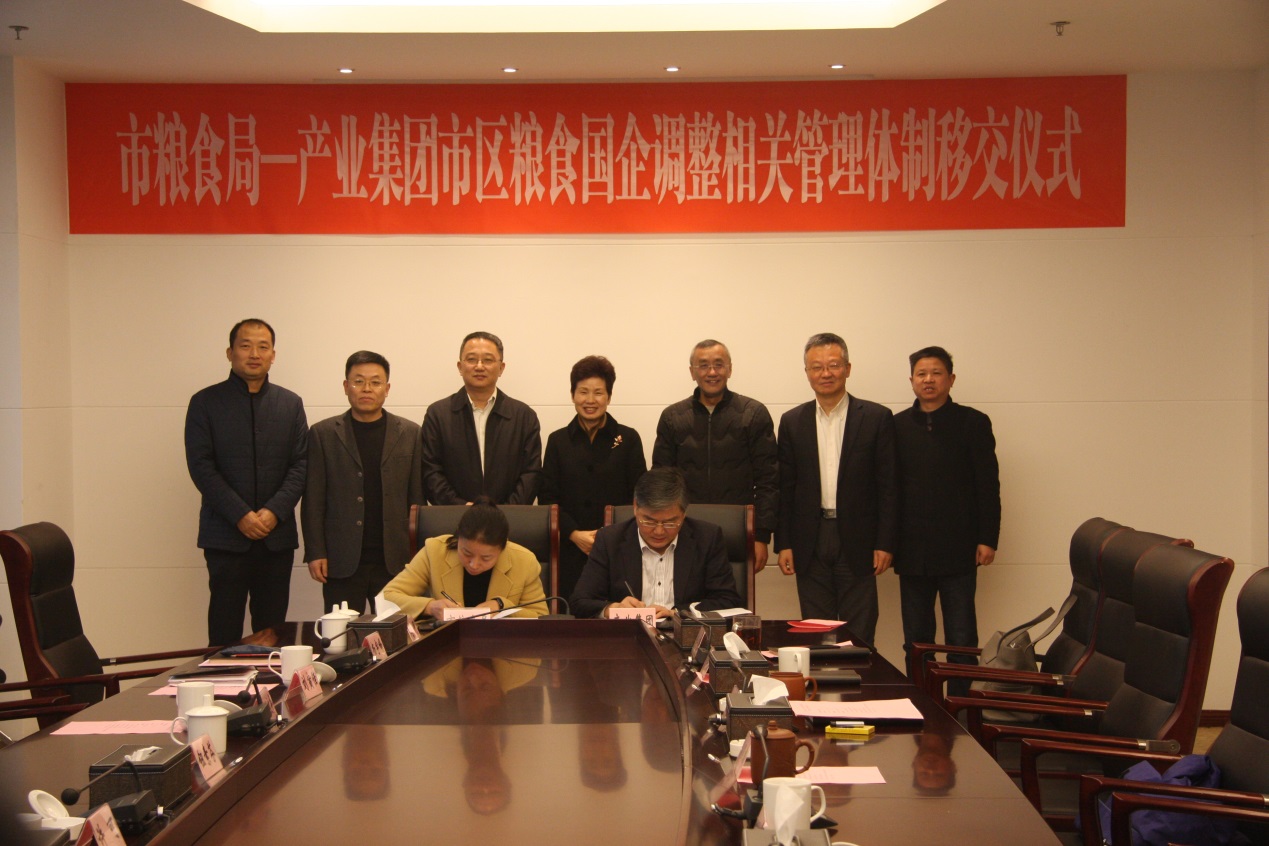 12月27日,產(chǎn)業(yè)集團(tuán)與市糧食局在產(chǎn)業(yè)集團(tuán)二樓會(huì)議室舉行無(wú)錫市糧食國(guó)企調(diào)整相關(guān)管理體制移交確認(rèn)書(shū)簽字儀式。市政府副秘書(shū)長(zhǎng)鈕素芬、市國(guó)資委主任許可、副主任葉再熙,市糧食局黨委書(shū)記、局長(zhǎng)周學(xué)東、副局長(zhǎng)吳莉萍、黎平陽(yáng),市財(cái)政局副局長(zhǎng)孫文華,產(chǎn)業(yè)集團(tuán)黨委書(shū)記、董事局主席蔣國(guó)雄、副總裁張曉耕出席簽字儀式。